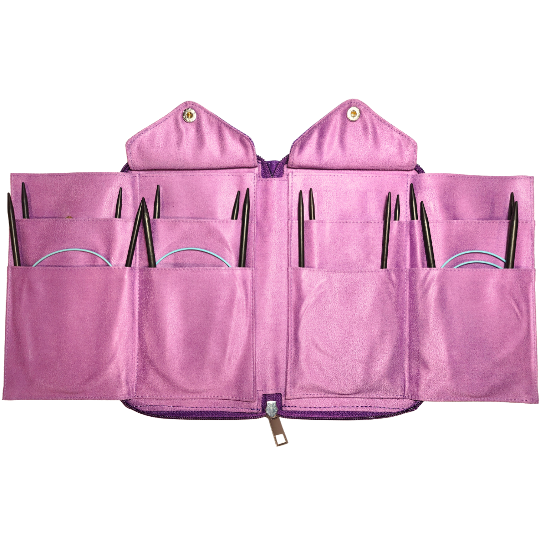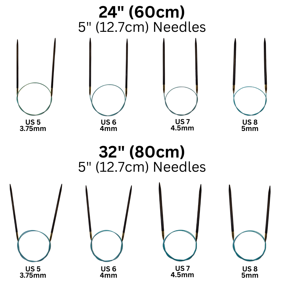 Our Sweater Set is the ultimate toolkit for sweater-making enthusiasts, featuring ebony circular needles designed for both beauty and performance. Each needle is crafted from luxurious, ethically sourced ebony wood, offering a warm, smooth touch that makes every stitch a pleasure. The premium kink-resistant vinyl-coated steel cable ensures flexibility without tangling, while smooth, snag-free joins and a swivel mechanism allow the cable to rotate freely—preventing twists and reducing hand fatigue. With eight essential needle sizes included, this set is ideal for knitting sweaters of all shapes and sizes. Housed in a sleek, premium canvas case with soft suede interior for organized storage and portability, the Sweater Set brings together elegance, comfort, and functionality in one beautifully crafted package.