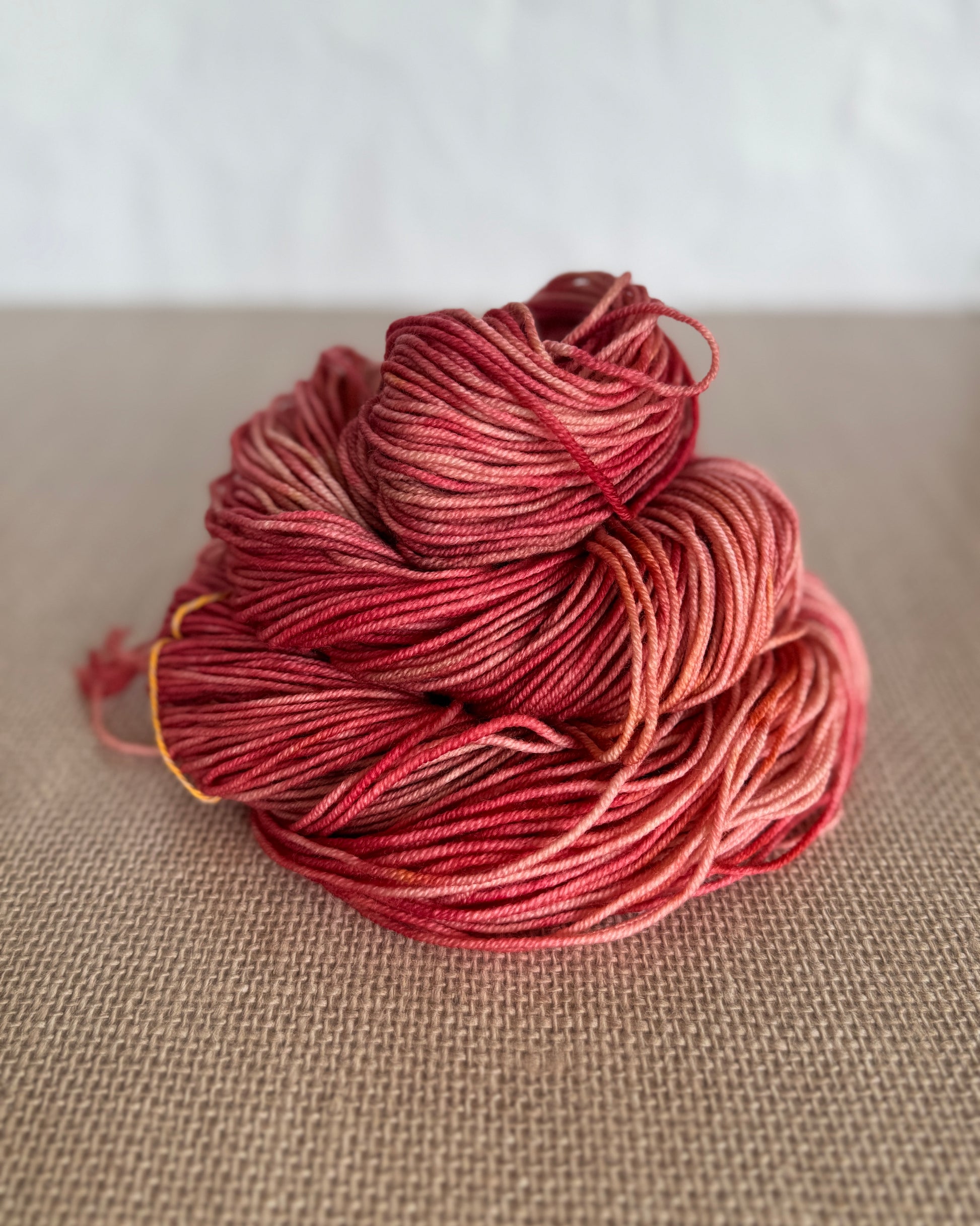 A romantic blend of petal pinks, blush tones, and deep rosewood, Wild Rose captures the beauty of untamed blooms thriving in nature’s quiet corners. From sun-faded petals to velvety crimson, each skein carries a soft vibrancy that feels both vintage and wild — a love letter to blooming hedgerows and warm summer evenings.