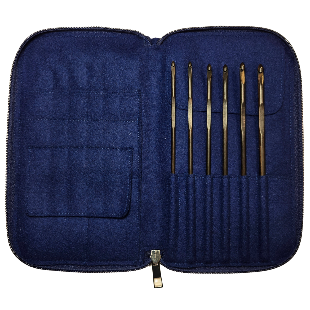 The Premium Ebony 7" Crochet Hooks offer an exceptional crocheting experience with their smooth, polished finish and ergonomic design. Crafted from high-quality ebony wood, one of the worlds most valuable materials, these hooks provide a comfortable grip and effortless glide, making your crocheting sessions both enjoyable and efficient. Available in six versatile sizes—E, F, G, 7, H, and I—these hooks are perfect for a variety of projects, from lace weight to medium yarn creations. The set comes in a custom zipper case for easy storage and portability, ensuring your hooks are always organized and ready for use. With these premium tools, the possibilities are endless, allowing you to crochet in an infinite creative flow, where the only limit is your imagination, and you can truly crochet forever.