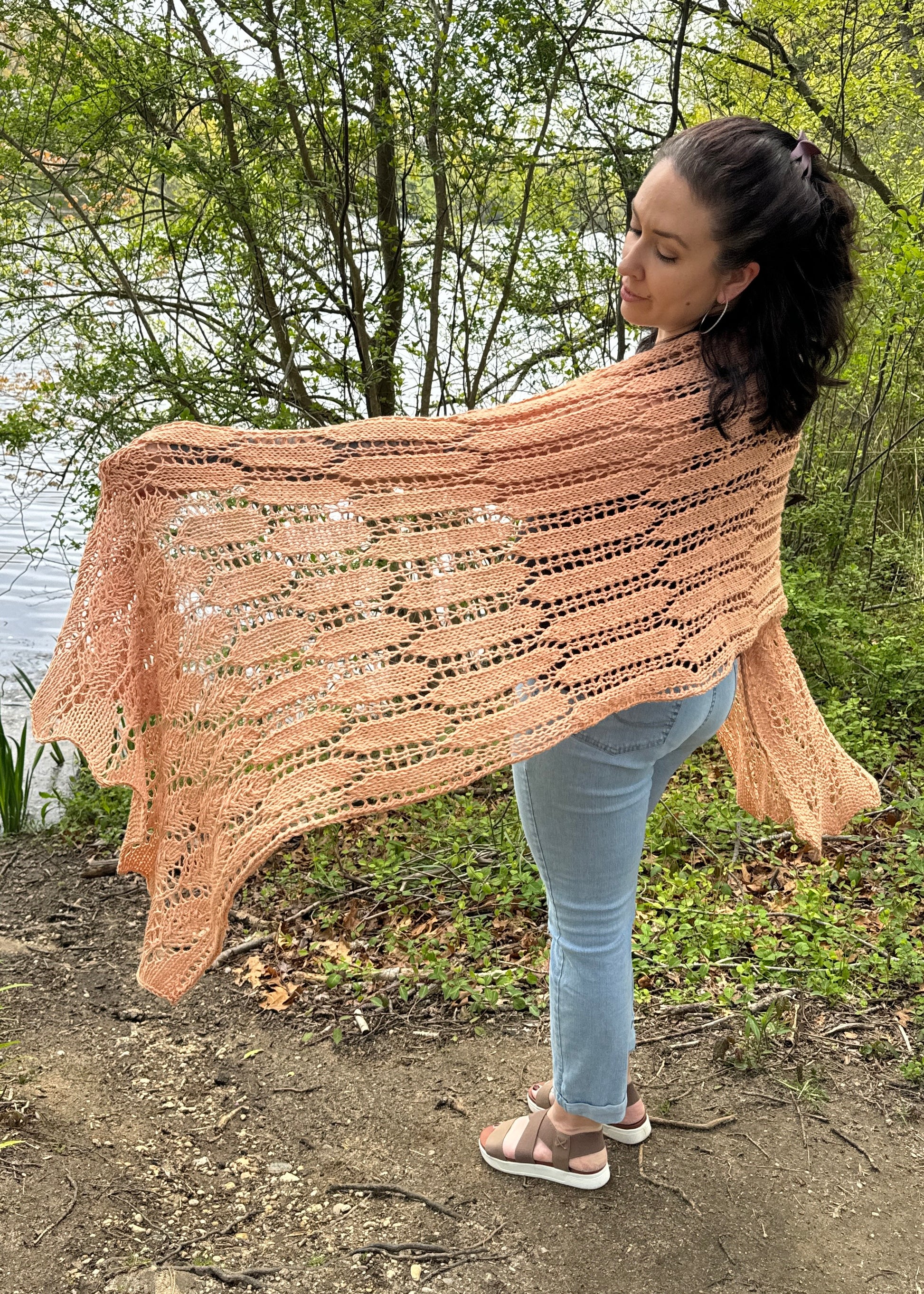 For me nothing says Summer more than an early morning or late evening stroll. And while Summer days may be steamy, there’s still a chill in the air as the sun passes across the horizon. For those moments an airy wrap adds a magical touch, even more when you’ve knit it yourself!