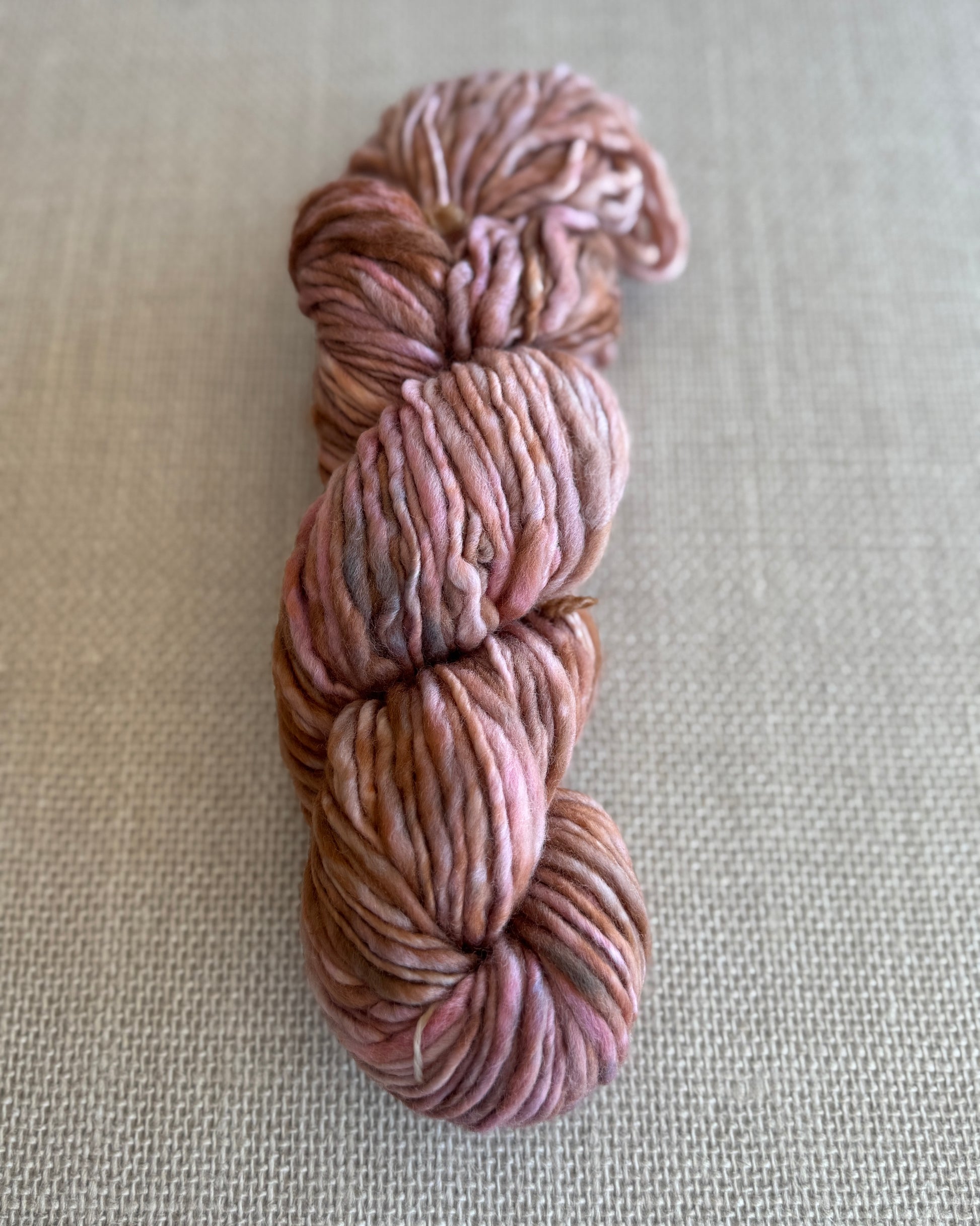 Tupelo Bulky is a soft, thick-and-thin single-ply yarn spun from 100% superwash merino wool. Hand-dyed in small batches, each skein carries natural variation and painterly tonal shifts that make every project one of a kind. The plush texture and gentle sheen bring simple stitches to life — perfect for cozy hats, cowls, scarves, and sweaters that invite warmth and touch.